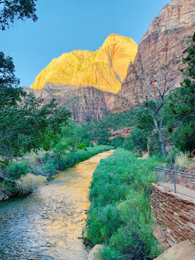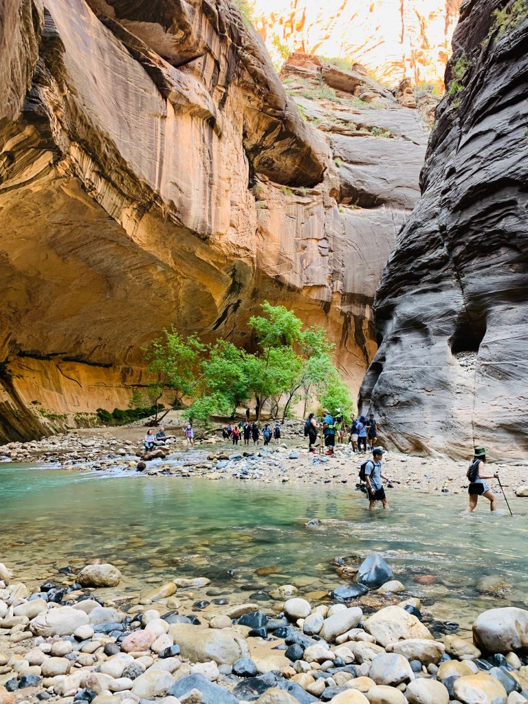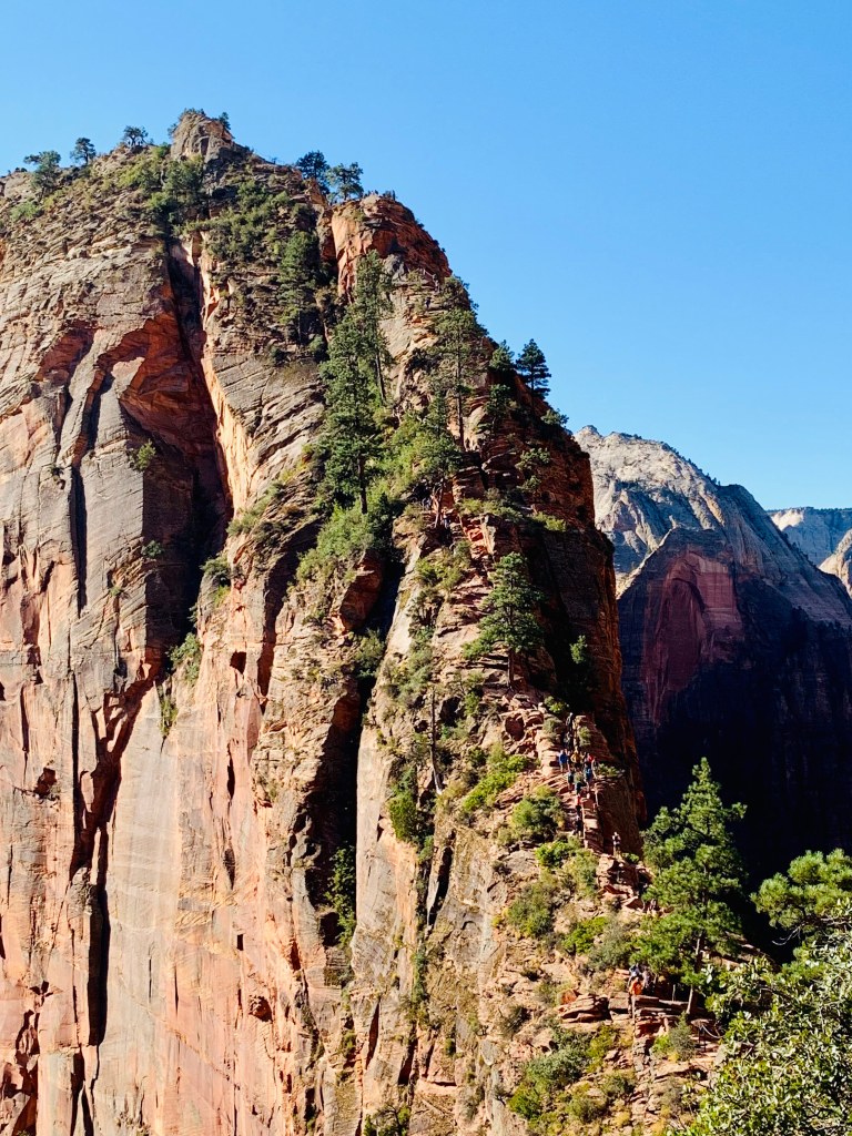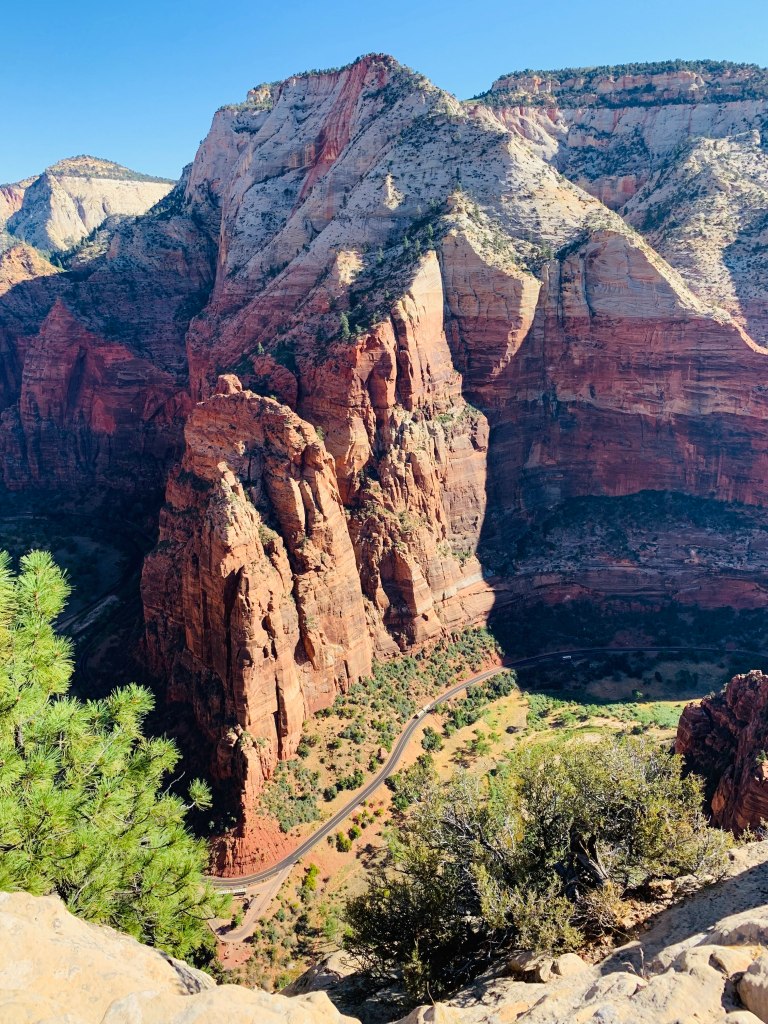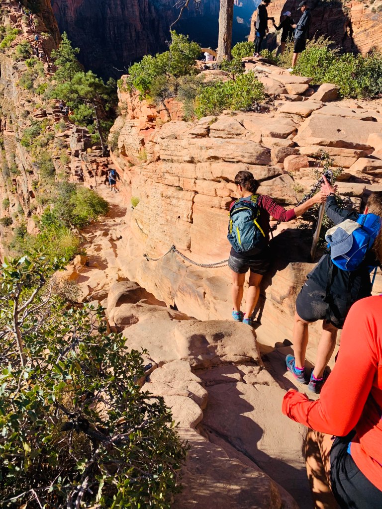 Day 2 (Zion): breakfast @ hotel, leave hotel by 6:00 am ready to hike, go straight to Zion National Park (45 min drive, park in Zion Nat’l Park at Visitor Center, catch free Zion shuttle to stop #6). Hike Angel’s Landing-5 hour hike (eat packed lunch during, added time to stop for pictures), 5.4 miles round trip (https://www.nps.gov/zion/learn/news/upload/Spring-2019-Tearsheet-Print-Ready5-3.pdf) After Angel’s Landing, visit Lower Emerald Pools (short/easy walk)- Upper pools were closed. Get back to car, eat dinner in Springdale. Then drove 45 min back to Hurricane, to check in to our AirBnB for the night, ($100 booked AirBnB -Desert Sky home in Hurricane-it was perfect for 4 people and the host was lovely!