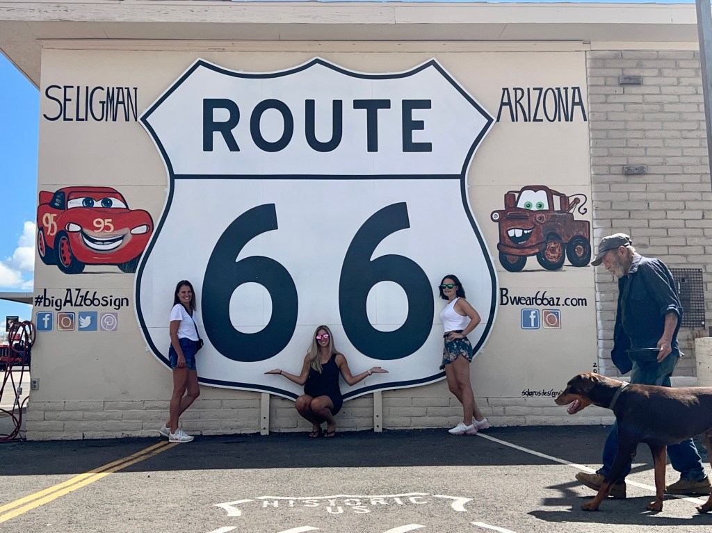 Myself and two girlfriends flew into Phoenix two days prior to the start of our hike . We picked up our rental car and grabbed some lingering groceries (see packing list post). The day before the hike, we traveled the 3.5 hours to Peach Springs, Arizona to pick up our permits and check into the Grand Caverns Inn for the night of Route 66. On the way, we toured a bit of Route 66, having fun in Seligman and venturing over to Kingman since we had time to kill to enjoy a final meal “up top”.