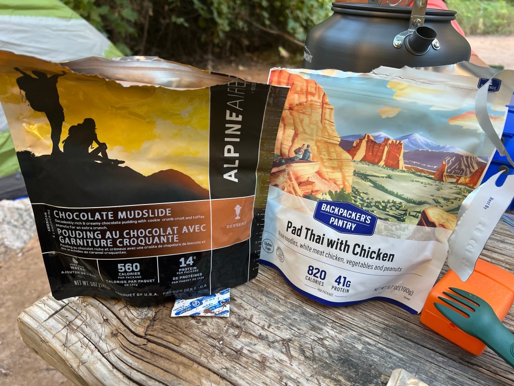 Finally around about 4 pm, we headed back to our campsite, made our Backpacker’s Pantry pad thai dehydrated meal for dinner and an amazing AlpineAire Foods chocolate mudslide dessert! Around 6 pm we used body wipes to wipe away the minerals and dirt to take a “camp shower”, changed into our pjs, and crawled into our tents for the night! The sound of the rushing water in the creek lulled us to sleep in no time!