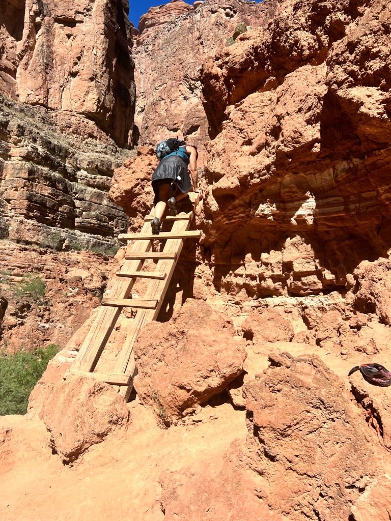 After briefly exploring Mooney Falls, we continued downstream to reach Beaver Falls, approximately 3-3.5 more miles. The trail takes you through mesmerizing terrain, offering glimpses of vine patches, turquoise pools, and smaller waterfalls along the way. Note of caution that there are several creek crossings, rock scrambles, and more makeshift ladders along the way! Beaver Falls, with its series of cascades and emerald-colored pools, is a serene paradise worth every step of the journey.